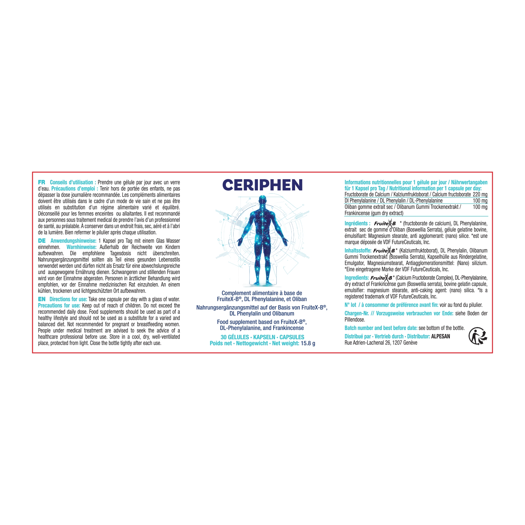 Combining FruiteX-B® (a patented calcium fructoborate complex) with Boswellia serrata and DL-Phenylalanine, this carefully balanced supplement supports joint function and overall comfort. FruiteX-B® is a vegan mineral complex that has been researched for its role in supporting joint mobility. Boswellia is traditionally used to support joint health, while DL-Phenylalanine contributes to the body’s natural processes involved in comfort and wellbeing.